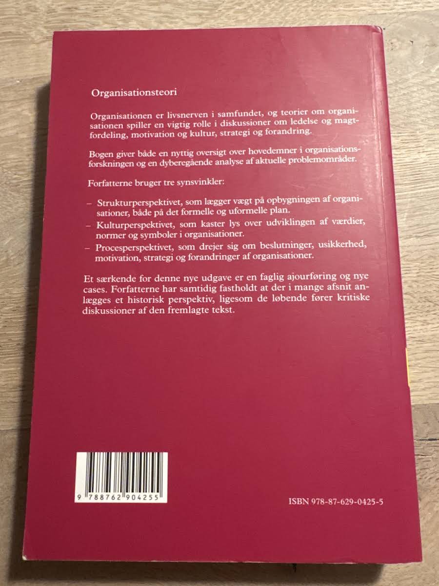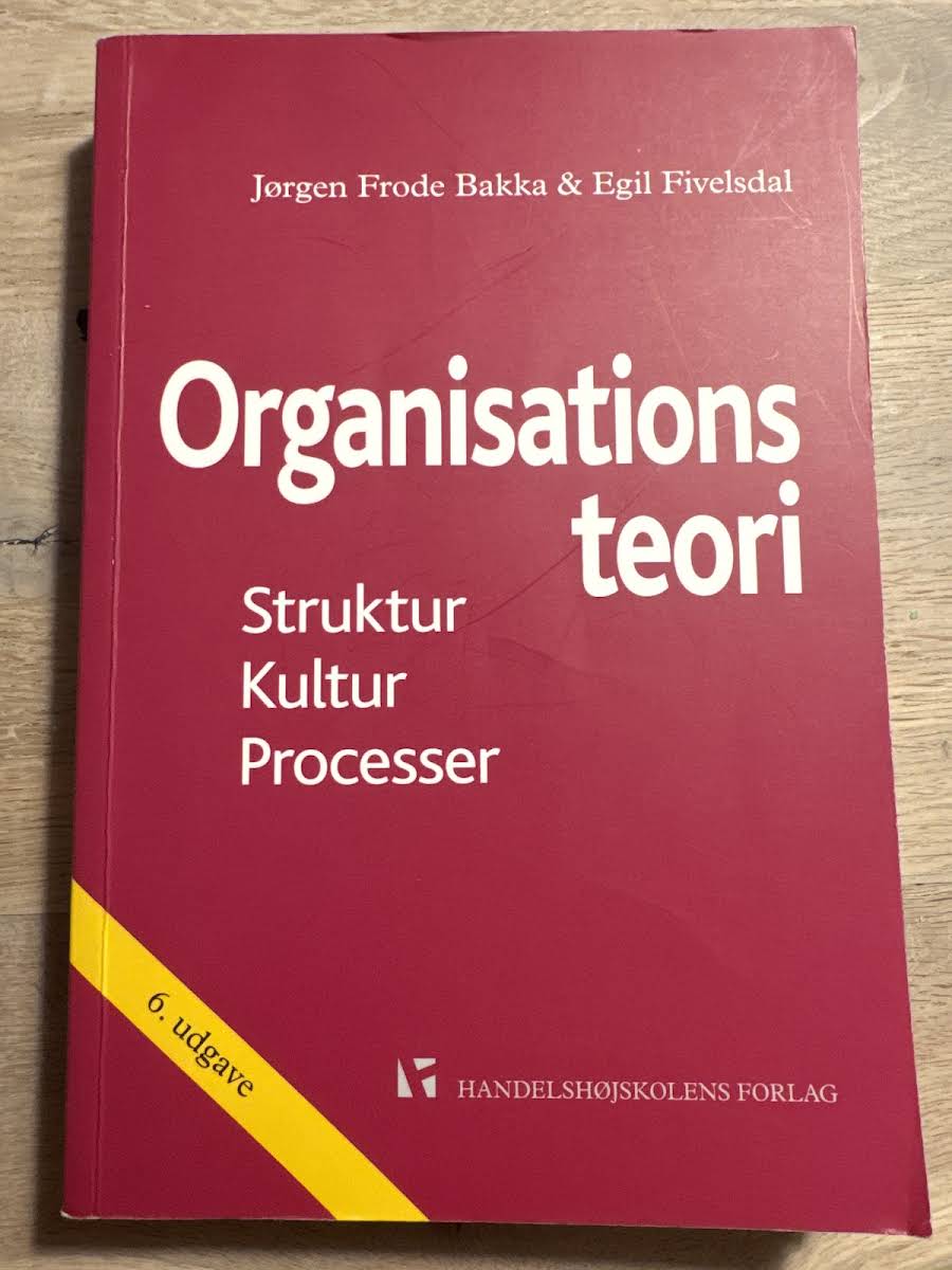 Organisationsteori: Struktur, kultur, processer af Jørgen Frode Bakka og Egil Fivelsdal giver en alsidig introduktion til, hvordan organisationer opbygges og udvikles. Bogen kombinerer en grundlæggende oversigt med dybdegående analyser af centrale områder inden for organisationsforskningen, og læseren præsenteres for, hvordan struktur, kultur og processer spiller sammen og påvirker ledelse, beslutninger og forandring. Forfatterne benytter tre perspektiver for at belyse organisationens virkelighed: strukturperspektivet, som fokuserer på både formelle og uformelle elementer; kulturperspektivet, der undersøger, hvordan værdier, normer og symboler skaber identitet; og procesperspektivet, som ser nærmere på beslutningsprocesser, usikkerhed og strategiske udfordringer. Med skarpe analyser og konkrete cases illustrerer bogen, hvordan teori og praksis mødes i organisationsverdenen. Denne sjette udgave videreudvikler og opdaterer de teoretiske indsigter, så den både tjener som et praktisk redskab og som en inspirerende refleksion over organisationers rolle i samfundet.
