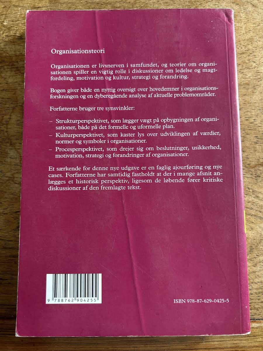 Organisationsteori: Struktur, kultur, processer af Jørgen Frode Bakka og Egil Fivelsdal giver en alsidig introduktion til, hvordan organisationer opbygges og udvikles. Bogen kombinerer en grundlæggende oversigt med dybdegående analyser af centrale områder inden for organisationsforskningen, og læseren præsenteres for, hvordan struktur, kultur og processer spiller sammen og påvirker ledelse, beslutninger og forandring. Forfatterne benytter tre perspektiver for at belyse organisationens virkelighed: strukturperspektivet, som fokuserer på både formelle og uformelle elementer; kulturperspektivet, der undersøger, hvordan værdier, normer og symboler skaber identitet; og procesperspektivet, som ser nærmere på beslutningsprocesser, usikkerhed og strategiske udfordringer. Med skarpe analyser og konkrete cases illustrerer bogen, hvordan teori og praksis mødes i organisationsverdenen. Denne sjette udgave videreudvikler og opdaterer de teoretiske indsigter, så den både tjener som et praktisk redskab og som en inspirerende refleksion over organisationers rolle i samfundet.