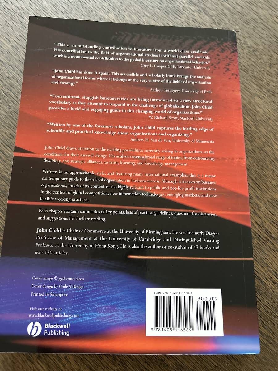 Organization: Contemporary Principles and Practice af John Child er en opdateret og omfattende introduktion til organisationsledelse i det moderne erhvervsliv. Med en tilgængelig og engagerende skrivestil byder bogen på en aktuel gennemgang af organisationers rolle og menneskers betydning for forretningssucces. Forfatteren præsenterer nye interne organisationsformer og viser, hvordan virksomheder udvikler sig for at imødekomme skiftende krav. Teoretiske principper kobles med praktiske eksempler og internationale cases, så både studerende og erfarne praktikere får direkte anvendelige værktøjer. Bogen dækker et bredt spektrum af emner - fra integration, kontrol og belønningssystemer til outsourcing, fleksibilitet, strategiske alliancer, tillid, læring og corporate governance. Det giver et solidt indblik i nutidens organisatoriske udfordringer og muligheder. Hvert kapitel afrundes med klare opsummeringer, konkrete retningslinjer, spørgsmål til diskussion og forslag til videre læsning. Desuden understøttes indholdet af online undervisningsmateriale, herunder lærervejledninger og powerpoint-præsentationer, som supplerer undervisningen og sikrer dybere forståelse.