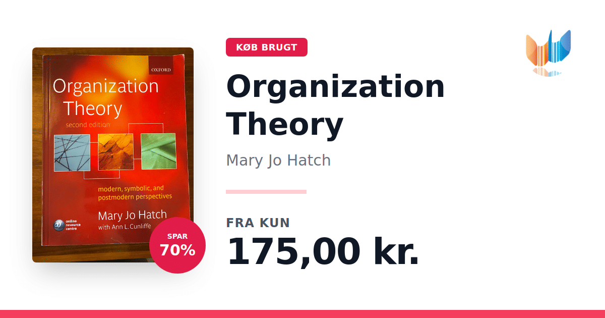 Organization Theory giver en klar og omfattende introduktion til studiet af organisationer og organiseringsprocesser. Bogen præsenterer moderne, symbolske og postmoderne perspektiver side om side og inviterer læseren til at sammenligne og reflektere over deres styrker og begrænsninger. I denne anden udgave fra 2006 kombinerer Mary Jo Hatch og Ann L. Cunliffe teori med illustrative eksempler, så komplekse begreber bliver tilgængelige for både studerende og praktikere. Med sine ca. 400 sider i paperback-format fungerer den som en grundbog til kurser i organisationsstudier og som et inspirerende opslagsværk for alle, der ønsker en nuanceret forståelse af, hvordan organisationer formes og forandres.