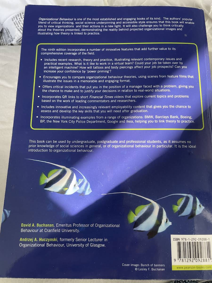 Organizational Behaviour by David A. Buchanan and Adrezej A. Huczynski offers a comprehensive exploration of the dynamics influencing modern organizations. The ninth edition, published in 2016 by Pearson Education, Limited, presents a balanced integration of critical thinking and social science, enabling students and professionals to gain a nuanced understanding of the factors shaping organizational performance. Across its 872 pages, this paperback edition delves into core concepts with clarity and depth, highlighting practical approaches to diagnosing and improving organizational practices. Drawing on rigorous analysis and contemporary research, the book serves as a valuable resource for anyone looking to navigate the complexities of organizational behavior in today’s ever-evolving business landscape.