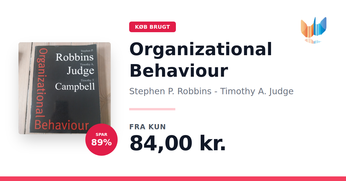Organizational Behaviour af Stephen P. Robbins, Timothy A. Judge og Timothy Campbell er en omfattende lærebog udgivet af Pearson Education i 2010 som første udgave. Bogen henvender sig både til bachelor- og kandidatniveau og giver en sammenhængende introduktion til teorier og praksis inden for organisationsadfærd. Med over 600 sider præsenterer teksten de nyeste forskningsresultater og tager fat på temaer som globalisering, kulturel mangfoldighed, arbejdsstyrkens sammensætning og etiske dilemmaer. Strukturen sikrer en klar kobling mellem grundlæggende begreber og eksempler fra den virkelige verden, hvilket gør stoffet direkte anvendeligt i både undervisning og praksis. Et væsentligt træk ved bogen er de nyskrevne cases, som henter inspiration fra internationale organisationer. Eksempler som Ferrari, Dresdner Kleinwort, Hilti Group og Google illustrerer, hvordan teori omsættes til handling på tværs af landegrænser og brancher.