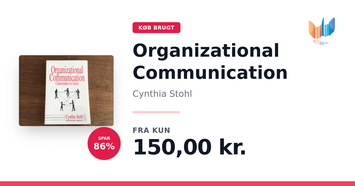 Lige nu kan du købe "Organizational Communication" af Cynthia Stohl til kun 150,00 kr. Du sparer hele 88% af nyprisen! Bogen du ser her er brugt, og i perfekt stand. Vi har i øjeblikket kun et enkelt eksemplar til salg af "Organizational Communication", så slå til mens du kan!