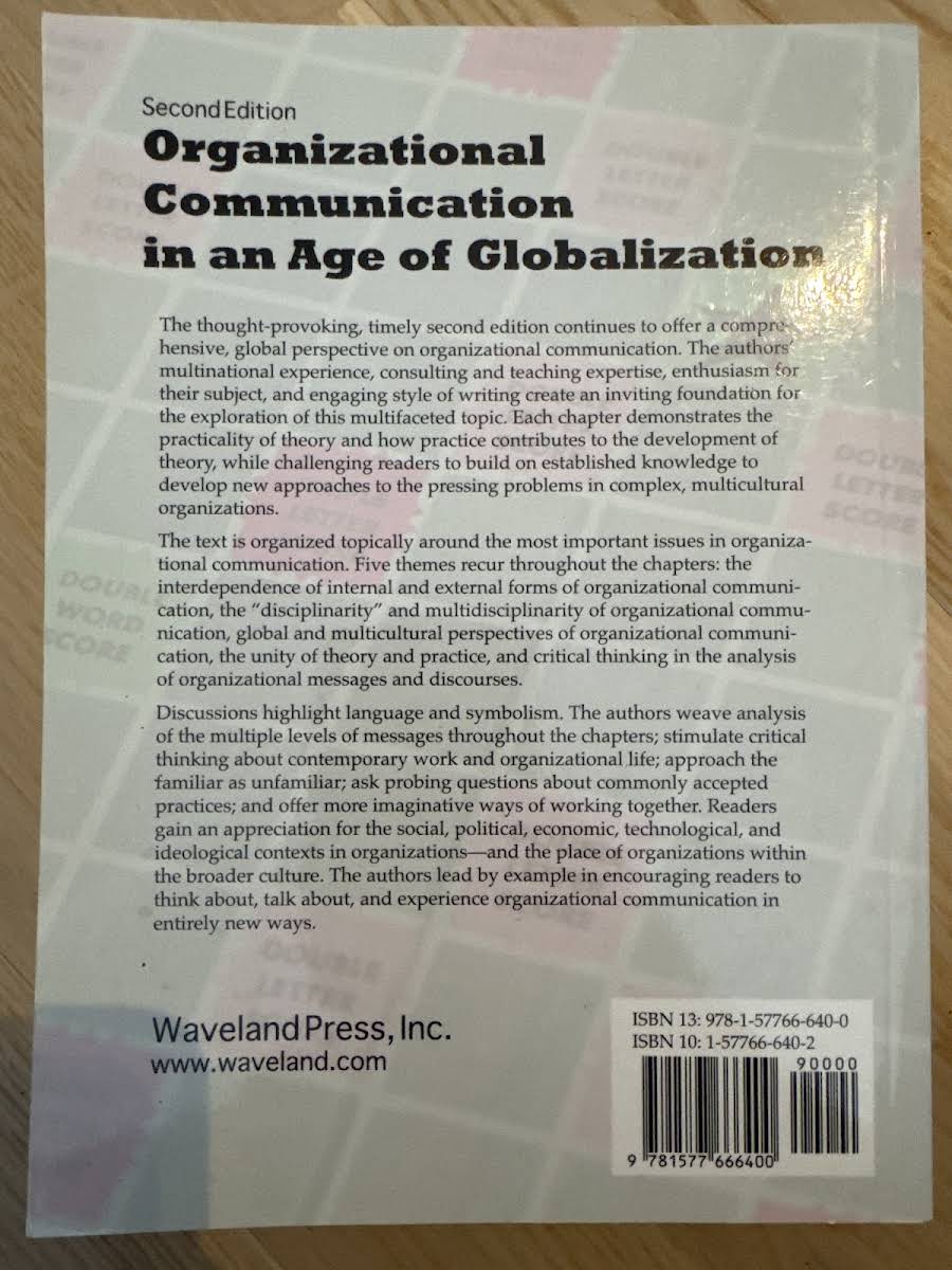 • Organizational Communication in an Age of Globalization, George Cheney, Lars Thøger Christensen, Theodore E. Zorn, Shiv Ganesh, 9781577666400