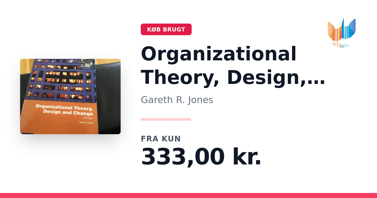 Organizational Theory, Design, and Change, skrevet af Gareth R. Jones, er udviklet til bachelor- og kandidatstuderende i organisationsteori, organisationsstruktur og forandringsledelse. Bogen introducerer grundlæggende begreber og giver en helhedsorienteret forståelse af, hvordan organisationer fungerer og kan optimeres. Virksomheder befinder sig i et konstant omskifteligt miljø, hvor ledere må omstrukturere og tilpasse deres organisation for at skabe konkurrencefordele. Denne udgave fra 2010 præsenterer aktuelle teorier kombineret med virkelighedsnære cases, så læseren kan følge, hvordan beslutninger omsættes til handling. Med 543 sider i paperback-udgave leverer teksten en omfattende behandling af, hvordan teori og praksis forenes i design og implementering af organisatoriske forandringer. Bogen er et uundværligt redskab for alle, der ønsker indsigt i moderne organisationsudvikling.