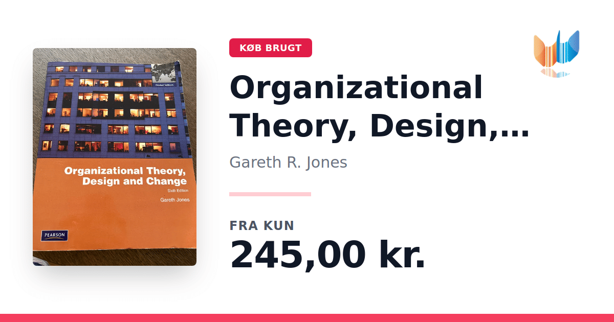 Organizational Theory, Design, and Change, skrevet af Gareth R. Jones, er udviklet til bachelor- og kandidatstuderende i organisationsteori, organisationsstruktur og forandringsledelse. Bogen introducerer grundlæggende begreber og giver en helhedsorienteret forståelse af, hvordan organisationer fungerer og kan optimeres. Virksomheder befinder sig i et konstant omskifteligt miljø, hvor ledere må omstrukturere og tilpasse deres organisation for at skabe konkurrencefordele. Denne udgave fra 2010 præsenterer aktuelle teorier kombineret med virkelighedsnære cases, så læseren kan følge, hvordan beslutninger omsættes til handling. Med 543 sider i paperback-udgave leverer teksten en omfattende behandling af, hvordan teori og praksis forenes i design og implementering af organisatoriske forandringer. Bogen er et uundværligt redskab for alle, der ønsker indsigt i moderne organisationsudvikling.