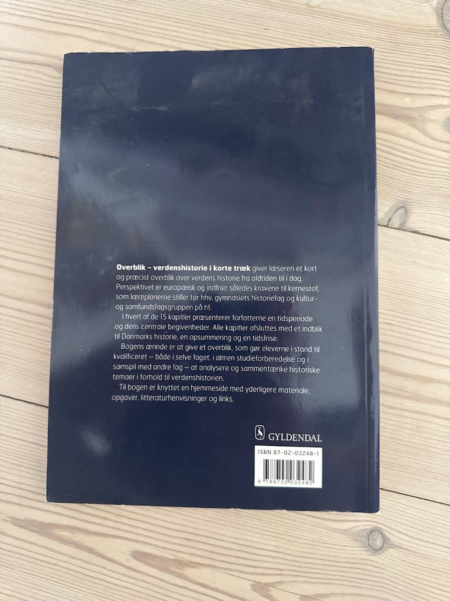 I "Overblik" får Ulrik Grubb, Knud Helles og Bente Thomsen læseren til at udforske verdenshistorien gennem 15 letforståelige og velillustrerede kapitler. Hvert kapitel er struktureret med en klar introduktion til periodens karakteristika, efterfulgt af en overskuelig opsummering, der understreger de vigtigste historiske udviklinger og begivenheder. Bogen sætter et særligt fokus på europæisk historie, idet den fremhæver, hvordan de enkelte epoker udvikler sig og adskiller sig fra hinanden. Hvor det er relevant, laves der interessante sammenligninger med den danske kontekst, hvilket gør "Overblik" særligt relevant for fagligt niveau på gymnasie- og hf-området. Med sine 183 sider giver denne første udgave, udgivet af Systime i 2005, et solidt grundlag for både repetition og en dybere forståelse af historiens store linjer.