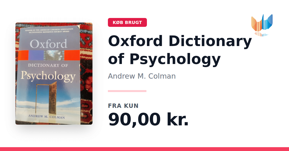 Lige nu kan du købe "Oxford Dictionary of Psychology" af Andrew M. Colman til kun 90,00 kr. Bogen du ser her er brugt, og i god stand. Vi har i øjeblikket 2 eksemplarer til salg af "Oxford Dictionary of Psychology", så husk at se de forskellige udgaver.
