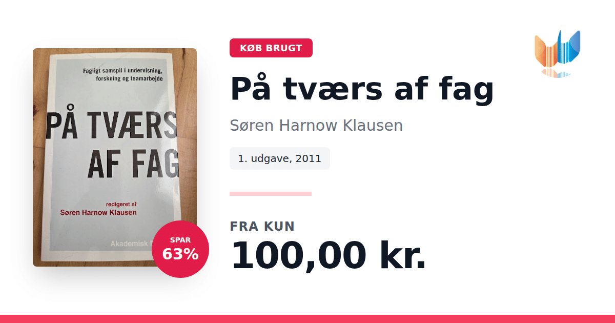 Lige nu kan du købe "På tværs af fag" af Søren Harnow Klausen til kun 100,00 kr. Du sparer hele 63% af nyprisen! Bogen du ser her er brugt, og i perfekt stand. Vi har i øjeblikket 2 eksemplarer til salg af "På tværs af fag", så husk at se de forskellige udgaver.