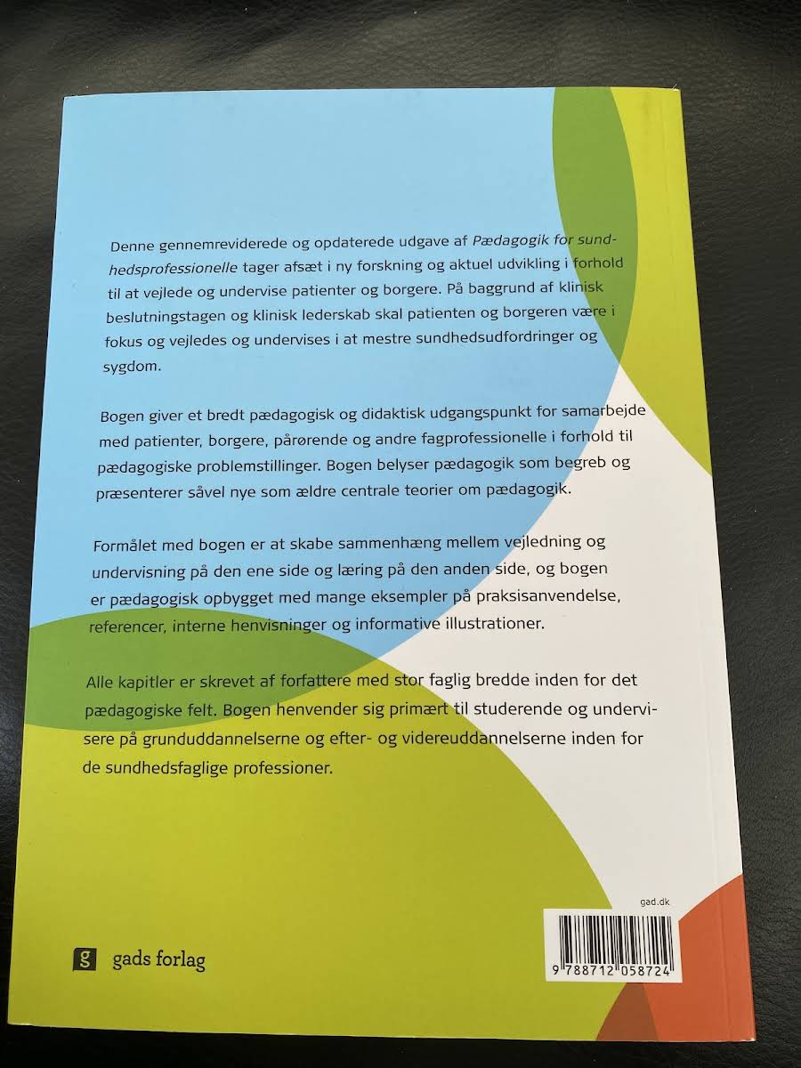 Denne reviderede og opdaterede udgave af Pædagogik for sundhedsprofessionelle bygger på ny forskning og de seneste tendenser inden for vejledning og undervisning af patienter og borgere. Med udgangspunkt i klinisk beslutningstagen og lederskab understreges vigtigheden af at sætte den enkelte i centrum, så de kan rustes til at håndtere sundhedsudfordringer og sygdom. Bogen tilbyder et bredt pædagogisk og didaktisk fundament for samarbejde med patienter, borgere, pårørende samt andre fagfolk. Den præsenterer både klassiske og nyere pædagogiske teorier og integrerer mange praktiske eksempler, referencer og interne henvisninger, der illustrerer de pædagogiske problemstillinger i praksis. Med sine mange informative illustrationer og inddragelse af relevante cases henvender bogen sig primært til studerende samt undervisere på de sundhedsfaglige grund-, efter- og videreuddannelser.