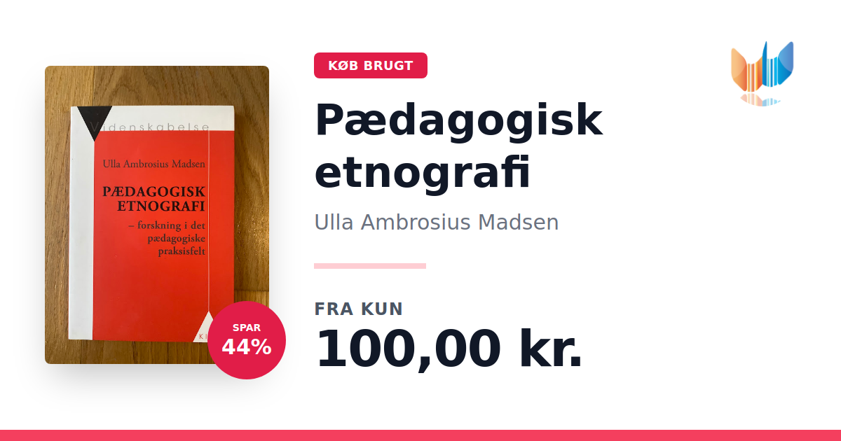 Pædagogisk etnografi er den første samlede danske fremstilling af etnografi i forskning i det pædagogiske praksisfelt. Ulla Ambrosius Madsen har som ambition at fastholde og udvikle etnografien som et solidt metodisk grundlag for dele af den pædagogiske forskning. Bogen sætter særligt fokus på forholdet mellem kultur og pædagogik og udfolder, hvordan etnografiske tilgange kan skabe nye perspektiver på pædagogiske processer. Den undersøger, hvordan kulturelle mønstre og praksisser former lærings- og undervisningsmiljøer og bidrager dermed til en dybere forståelse af pædagogisk praksis.