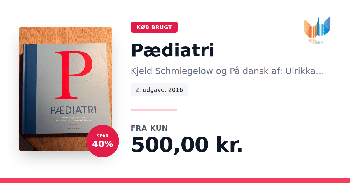 Lige nu kan du købe "Pædiatri" af Kjeld Schmiegelow og På dansk af: Ulrikka Nygaard til kun 500,00 kr. Du sparer hele 40% af nyprisen! Bogen du ser her er brugt, og i perfekt stand. Vi har i øjeblikket kun et enkelt eksemplar til salg af "Pædiatri", så slå til mens du kan!