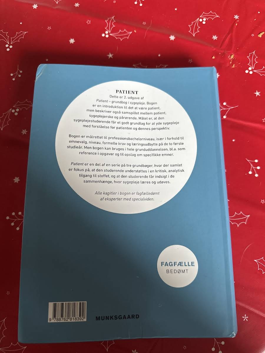 Patient – Grundbog i sygepleje, 2. udgave, introducerer læseren til den grundlæggende forståelse af patientrollen og belyser samspillet mellem patient, sygeplejerske og pårørende. Bogen har et klart fokus på at give sygeplejestuderende et solidt fundament, så de kan yde en omsorgsfuld og patientcentreret sygepleje med indsigt i patientens perspektiv. Med sit gennemarbejdede indhold er bogen specielt tilrettelagt til professionsbachelorniveau og dækker emner og krav, der er essentielle for de to første studieår. Samtidig fungerer den som et værdifuldt referenceværk gennem hele grunduddannelsen, hvor praktiske eksempler og fagfægledømte kapitler understøtter en kritisk og analytisk tilgang til sygeplejepraksis.