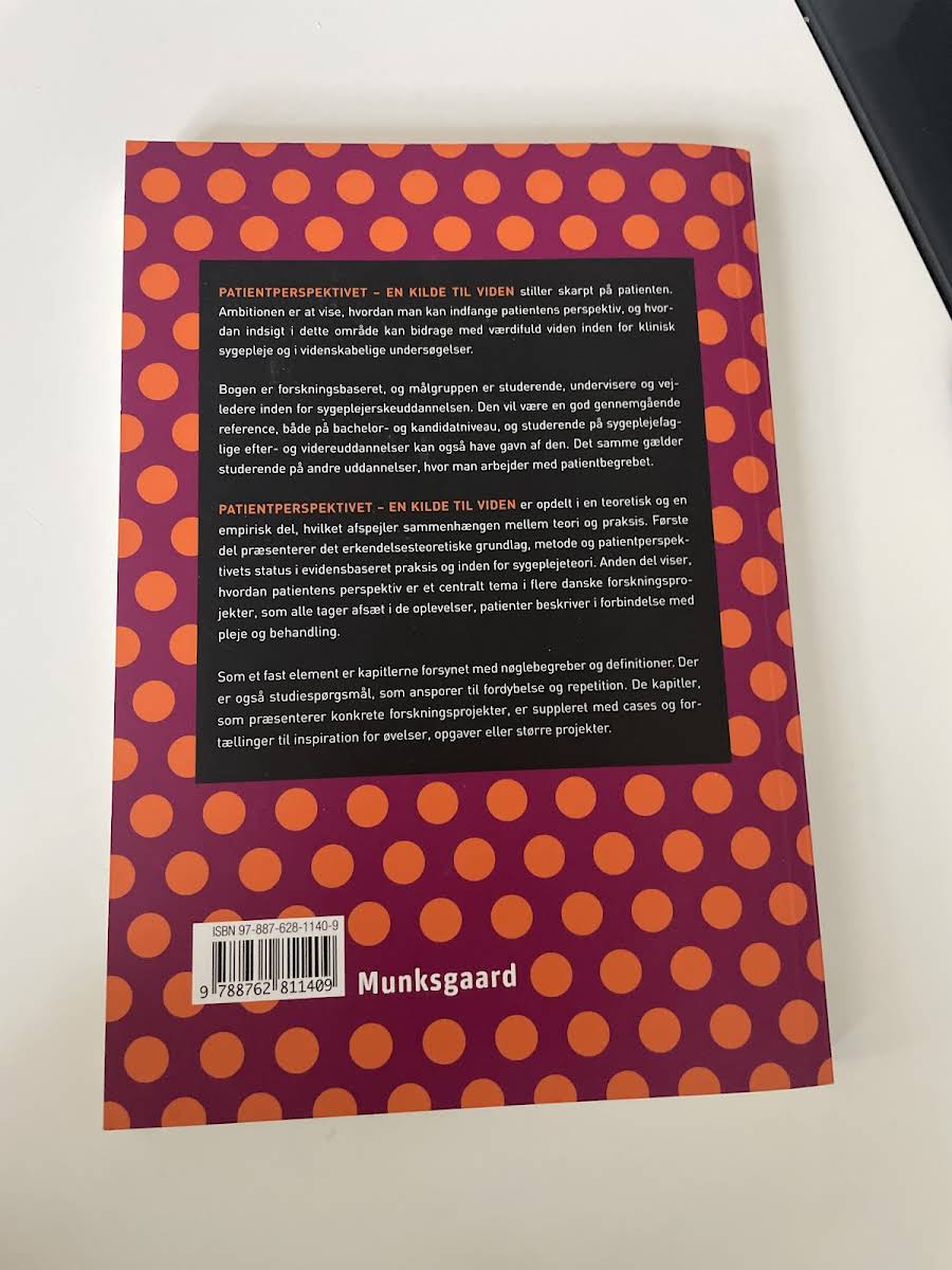 "Patientperspektivet – En kilde til viden" udspringer af et omfattende forskningsprojekt, der sætter patientens oplevelse i centrum for klinisk sygepleje og forskning. Bogen samler en bred forfattergruppe med mange års erfaring inden for sygeplejevidenskaben, og den udforsker, hvordan patientens perspektiv kan være med til at berige både teoretisk indsigt og praktisk arbejde. Med sin klare inddeling i teoretiske og empiriske afsnit belyses sammenhængen mellem evidensbaseret praksis og patientoplevelsernes betydning i pleje og behandling. Denne lærebogs praktiske tilgang illustreres gennem cases, øvelser og opgaver, der opfordrer både studerende, undervisere og vejledere til refleksion og anvendelse af de præsenterede koncepter. Hvert kapitel indeholder nøglebegreber og studiemateriale, der understøtter en dybere forståelse af, hvordan patientperspektivet kan forbedre klinisk praksis og forskning. Med "Patientperspektivet" får læseren et solidt værktøj til at integrere en vigtig dimension af patientoplevelsen i den daglige sygepleje.