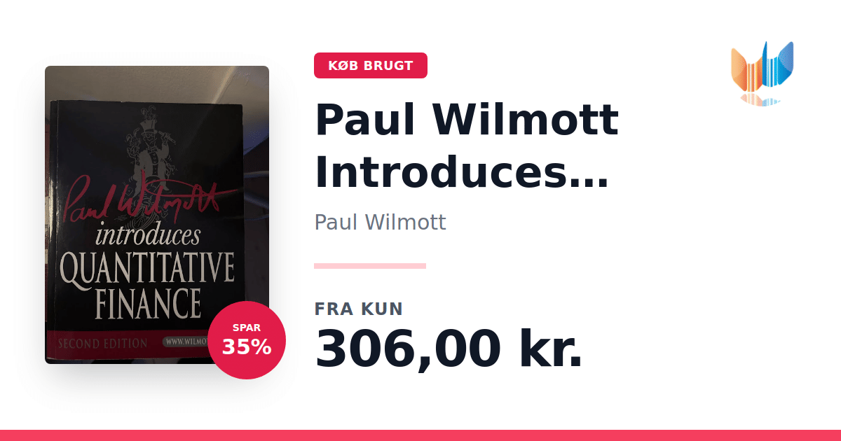 Lige nu kan du købe "Paul Wilmott Introduces Quantitative Finance" af Paul Wilmott til kun 306,00 kr. Du sparer hele 35% af nyprisen! Bogen du ser her er brugt, og i god stand. Vi har i øjeblikket kun et enkelt eksemplar til salg af "Paul Wilmott Introduces Quantitative Finance", så slå til mens du kan!