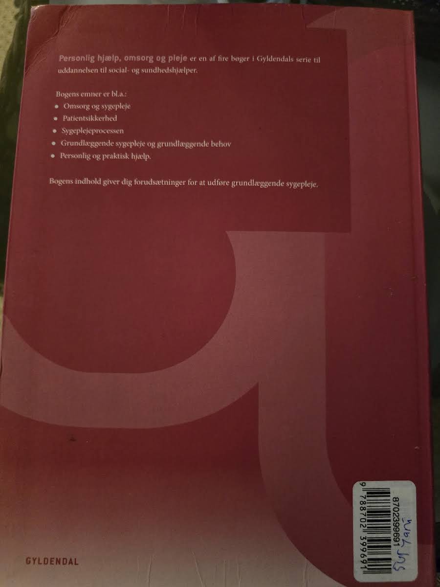 Denne grundbog er designet til dig, der skal arbejde som social- og sundhedshjælper og ønsker et solidt fundament inden for faget "Personlig hjælp, pleje og omsorg". I 2. udgave præsenteres centrale emner som omsorg og sygepleje, sygeplejeprocessen samt den grundlæggende sygepleje og basale behov. Fokus ligger også på personlig og praktisk hjælp, der understøtter den nære kontakt med patienterne og borgere i plejesektoren. Bogen, udgivet af Gyldendal i 2024, kombinerer teori og praksis på en pædagogisk måde og er et uundværligt redskab for både studerende og professionelle i feltet.
