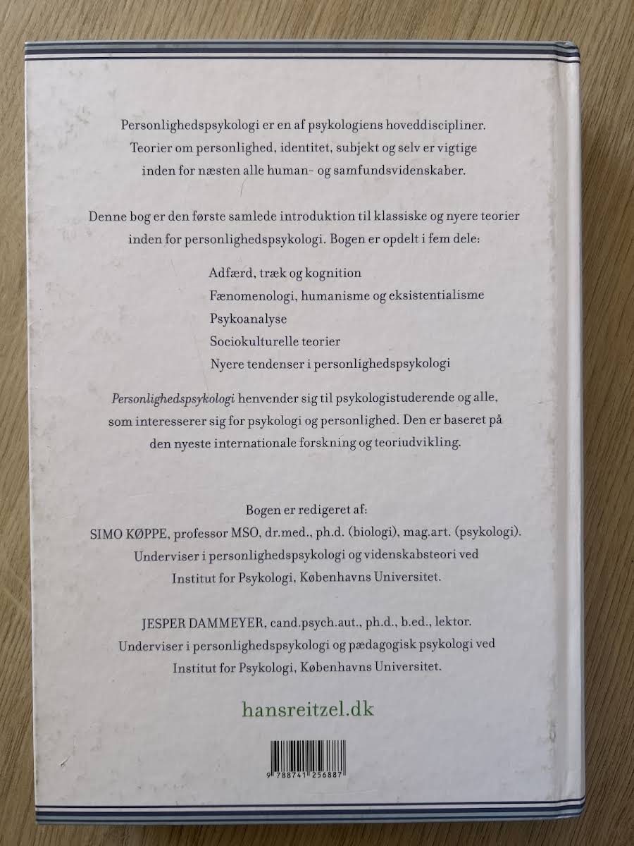 Personlighedspsykologi er en central del af psykologien, der sætter fokus på menneskets personlighed, følelser, forestillinger og viljesliv. Bogen giver en solid introduktion til både de klassiske og nyere teorier inden for området og tilbyder læseren en dybdegående indsigt i de processer, der former vores identitet og selvforståelse. Bogen er struktureret i fem dele, som blandt andet omhandler adfærd, træk og kognition, fænomenologi, humanisme og eksistentialisme, psykoanalytiske perspektiver, samt sociokulturelle teorier og de nyeste tendenser. Med et solidt teoretisk fundament henvender Personlighedspsykologi sig primært til psykologistuderende, men den er også værdifuld for alle, der har en bred interesse for, hvordan personlighed og identitet udvikles.