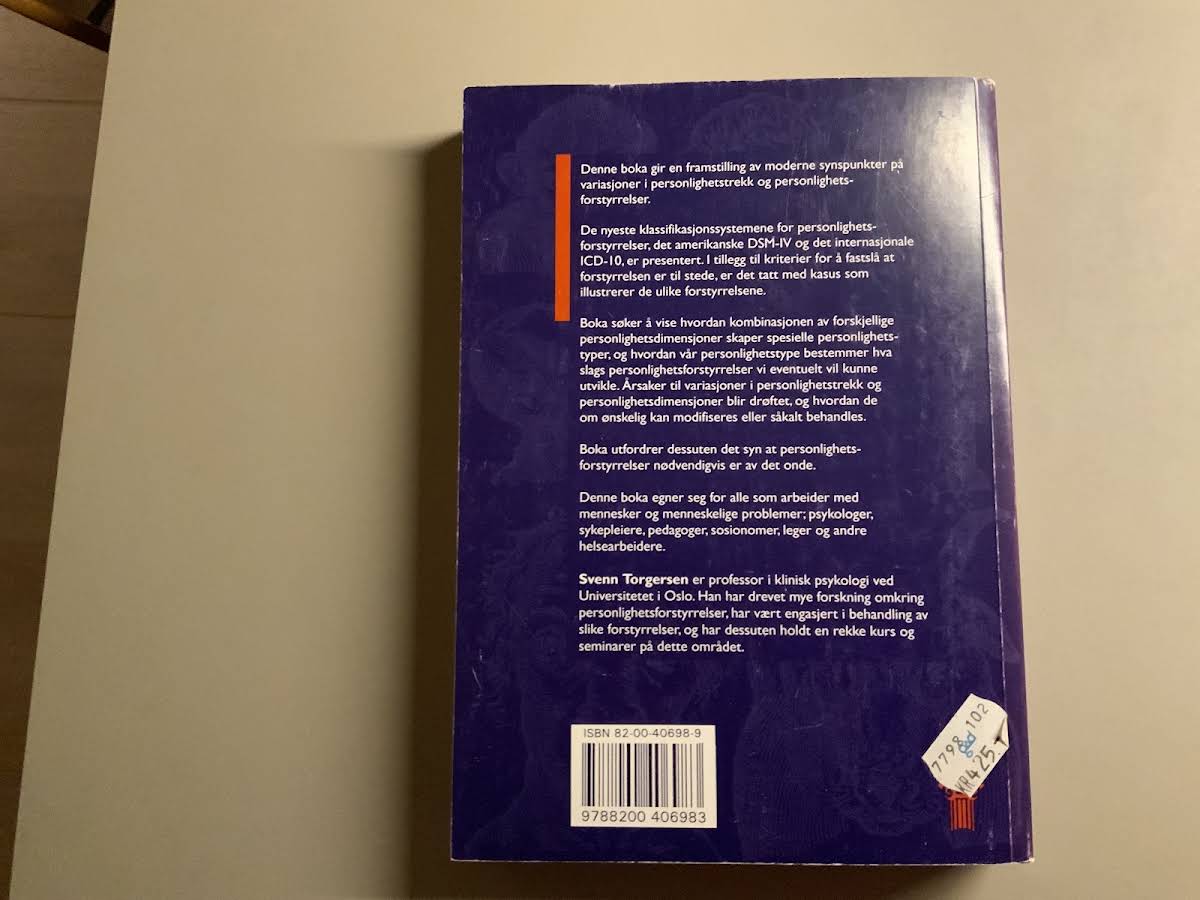 Lige nu kan du købe "Personlighet og personlighetsforstyrrelser" af Svenn Torgersen til kun 200,00 kr. Bogen du ser her er brugt, og i perfekt stand. Vi har i øjeblikket kun et enkelt eksemplar til salg af "Personlighet og personlighetsforstyrrelser", så slå til mens du kan!