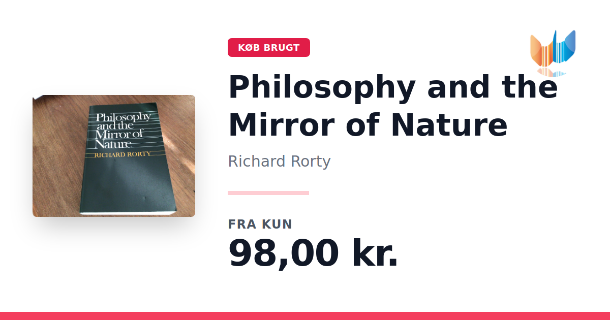 Lige nu kan du købe "Philosophy and the Mirror of Nature" af Richard Rorty til kun 98,00 kr. Bogen du ser her er brugt, og i perfekt stand. Vi har i øjeblikket kun et enkelt eksemplar til salg af "Philosophy and the Mirror of Nature", så slå til mens du kan!