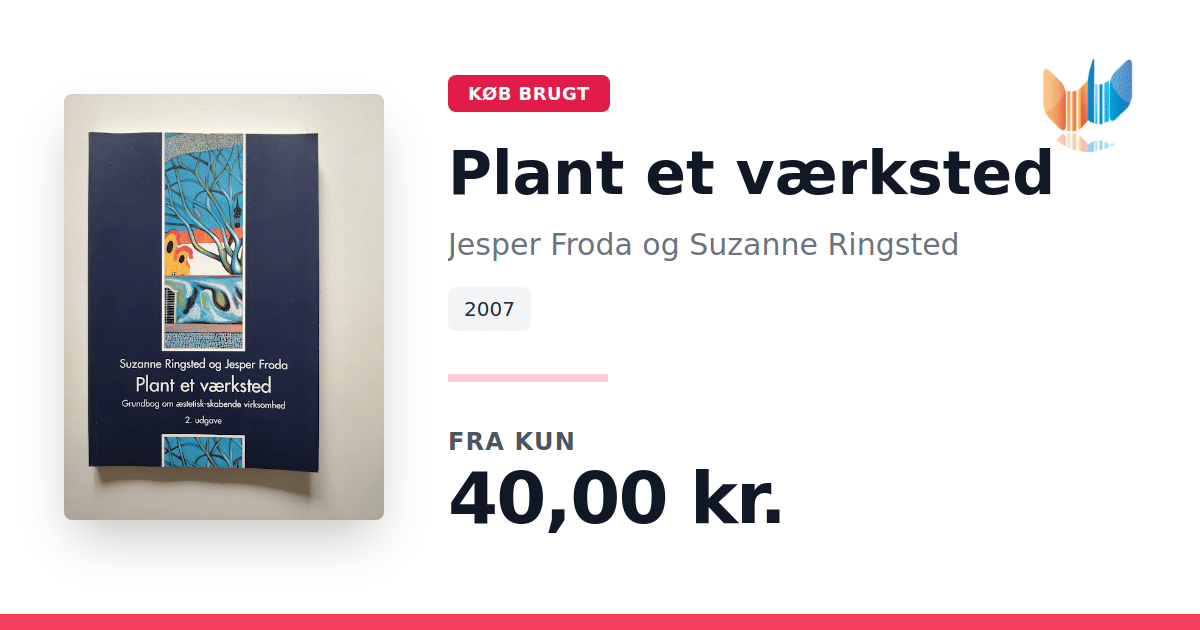 Lige nu kan du købe "Plant et værksted" af Jesper Froda og Suzanne Ringsted til kun 40,00 kr. Bogen du ser her er brugt, og i god stand. Vi har i øjeblikket 3 eksemplarer til salg af "Plant et værksted", så husk at se de forskellige udgaver.