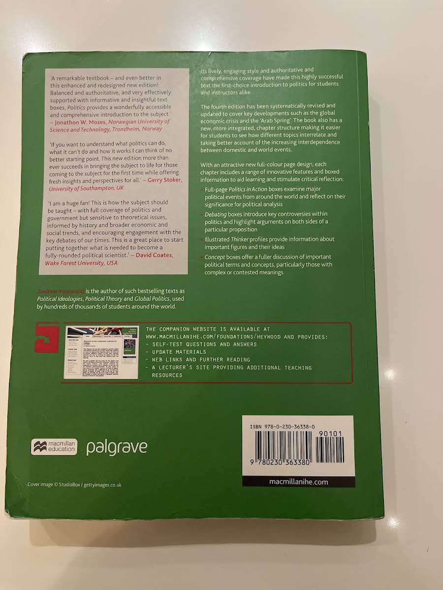Andrew Heywoods Politics (2013) er en autoritativ introduktion til politologi. Denne engelsksprogede paperback på 520 sider leverer en klar og systematisk gennemgang af de mest centrale begreber og teorier inden for faget. Bogen lægger særlig vægt på sammenhængen mellem nationale forhold og internationale begivenheder og giver et nuanceret billede af nutidens politiske dynamikker. Materialet er grundigt revideret og opdateret, så det dækker alle væsentlige udviklinger og debatter. Gennem illustrative casestudier, nøje udvalgte kontroverser, præsentation af centrale tænkere og overskuelige begrebskasser træner bogen din evne til kritisk analyse og opbygger din egen politiske dømmekraft. Ideel for studerende på introduktionskurser i Politologi og Internationale Relationer.