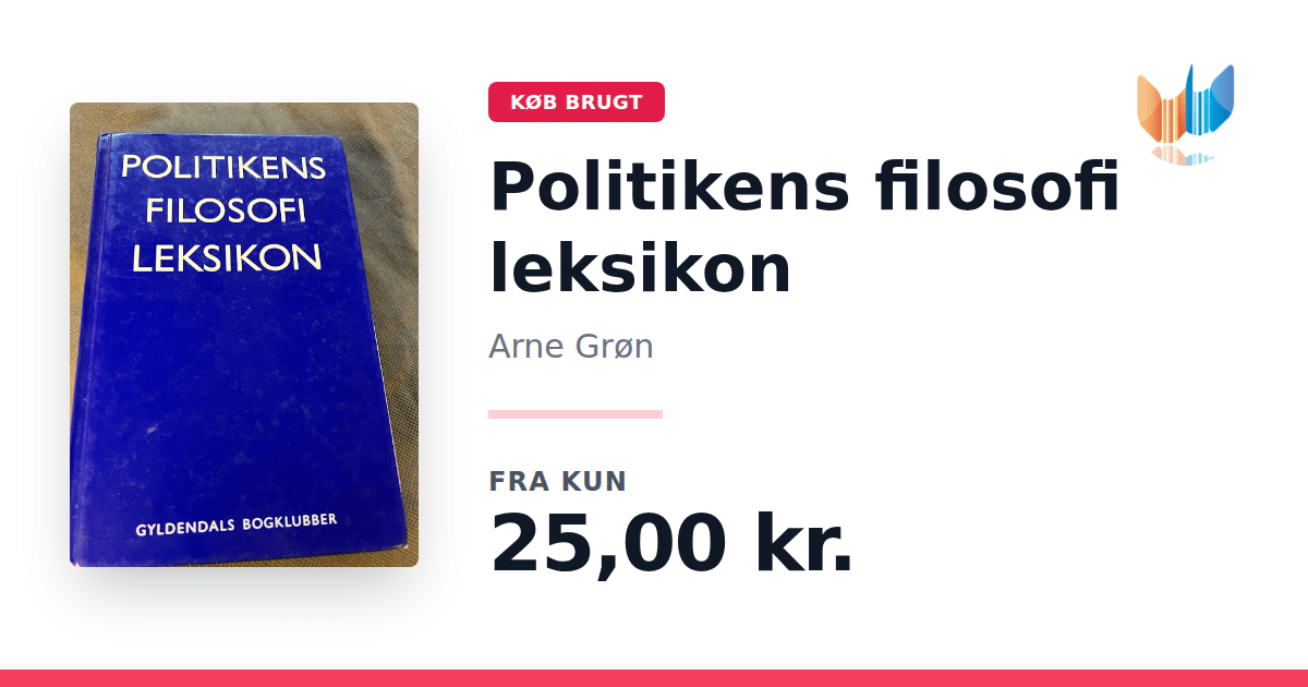 Lige nu kan du købe "Politikens filosofi leksikon" af Arne Grøn til kun 25,00 kr. Bogen du ser her er brugt, og i god stand. Vi har i øjeblikket 2 eksemplarer til salg af "Politikens filosofileksikon", så husk at se de forskellige udgaver.