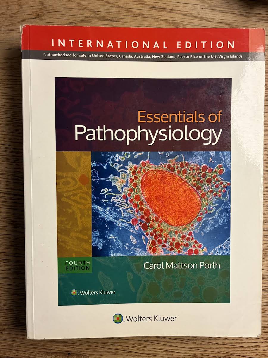 Essentials of Pathophysiology, 4. udgave (2014) af Carol Porth, udgivet af Lippincott Williams & Wilkins, er en grundbog for sygeplejersker, PA-studerende, farmakologistuderende og andre sundhedsprofessionelle. Bogen kombinerer videnskabelige grundprincipper med sygdomsprocesser og giver en klar og læsevenlig introduktion til, hvordan normale fysiologiske funktioner ændres ved patologiske tilstande. Hvert kapitel indledes med klare læringsmål og afsluttes med oversigtsbokse, der samler de centrale begreber. "Understanding"-funktionen guider læseren gennem komplekse processer, mens artworket er opdateret og forbedret i denne fjerde udgave, så det visuelt understøtter de vigtigste pointer. Til de studerende er der en fuldt søgbar e-bog, mere end 40 avancerede 3D-animationer med oplæsning, et spansk-engelsk lydglossar samt monografier over hyppigt ordinerede lægemidler. Desuden medfølger journalartikler, 600 NCLEX-lignende spørgsmål og et regne- og dosisregningsmodul til at styrke både teoretisk viden og praktiske færdigheder. Underviserne får adgang til omfattende PowerPoint-slides, guidede forelæsningsnoter, diskussionsemner, opgaver med facit, casestudier, journalsamling, prøvelæsningsquizzer og en QSEN-kortlægning, der sikrer sammenhæng mellem teoretisk undervisning og klinisk praksis.