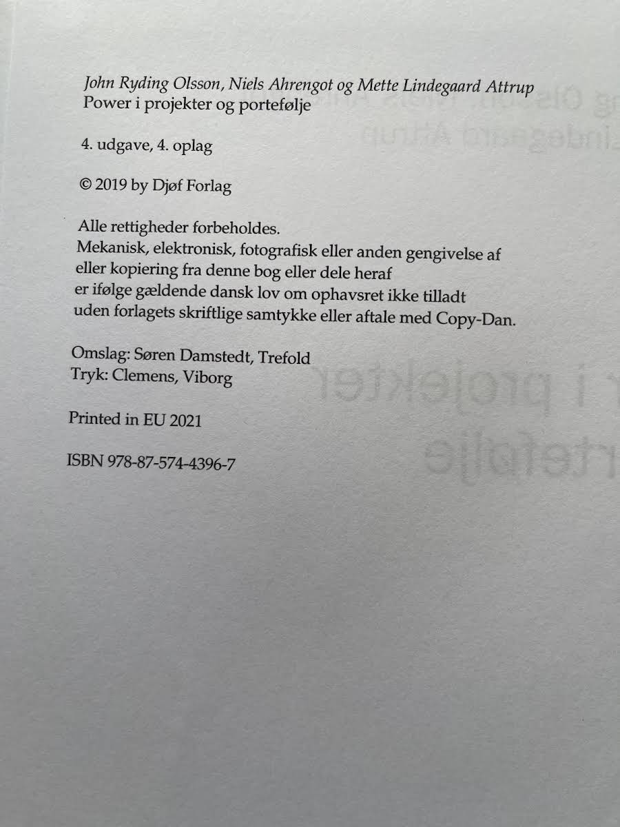 4. udgave af Power i projekter og portefølje er en praksisnær guide, der understreger vigtigheden af effektiv projekt- og porteføljeledelse for organisationers udvikling og overlevelsesevne. Bogen tilbyder konkrete redskaber og anvisninger inden for discipliner som målsætning, styring, planlægning og organisering, og giver samtidig fokus på lederskab, teambuilding, coaching samt kommunikation og konflikthåndtering. Med et udgangspunkt i den klassiske projektledelse kombinerer denne udgave moderne tendenser inden for projektstyring. Læserne introduceres for principperne bag Minimum Viable Product og Half Double, som fremmer hurtig effekt og et tæt samarbejde mellem projektejer og projektteam. Desuden belyses agile principper med fokus på at nedbryde organisationens overordnede strategi i konkrete programmer og strategiske indsatsområder, der understøtter en agil tilgang til porteføljeledelse.