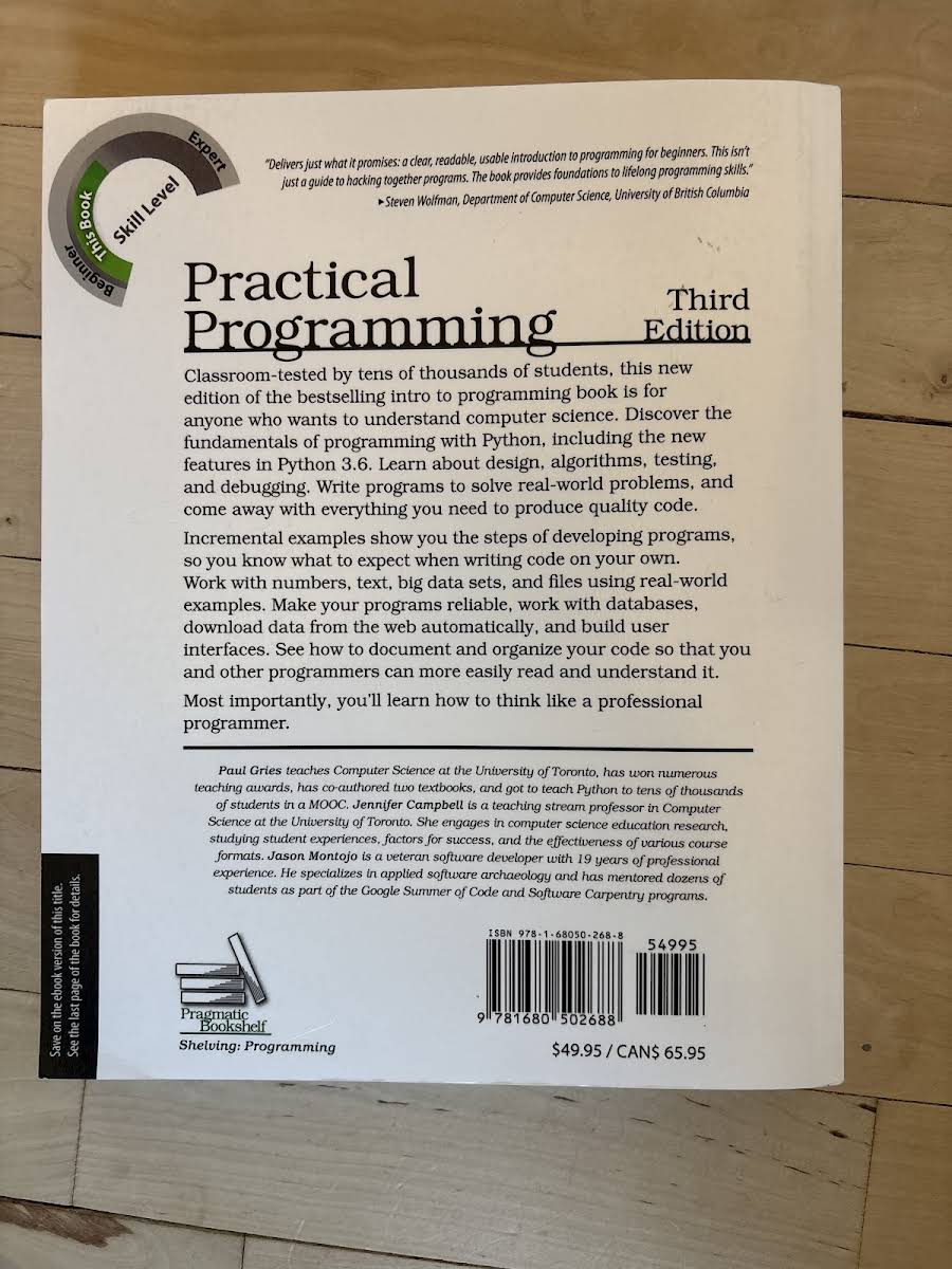 • Practical Programming, 3e, Jennifer Campbell, Paul Gries, Jason Montojo, 9781680502688