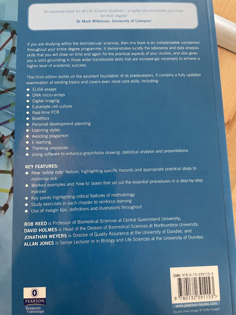 • Practical Skills in Biomolecular Sciences, Rob Reed, David Holmes, Jonathan Weyers, Allan Jones, 9780132391153