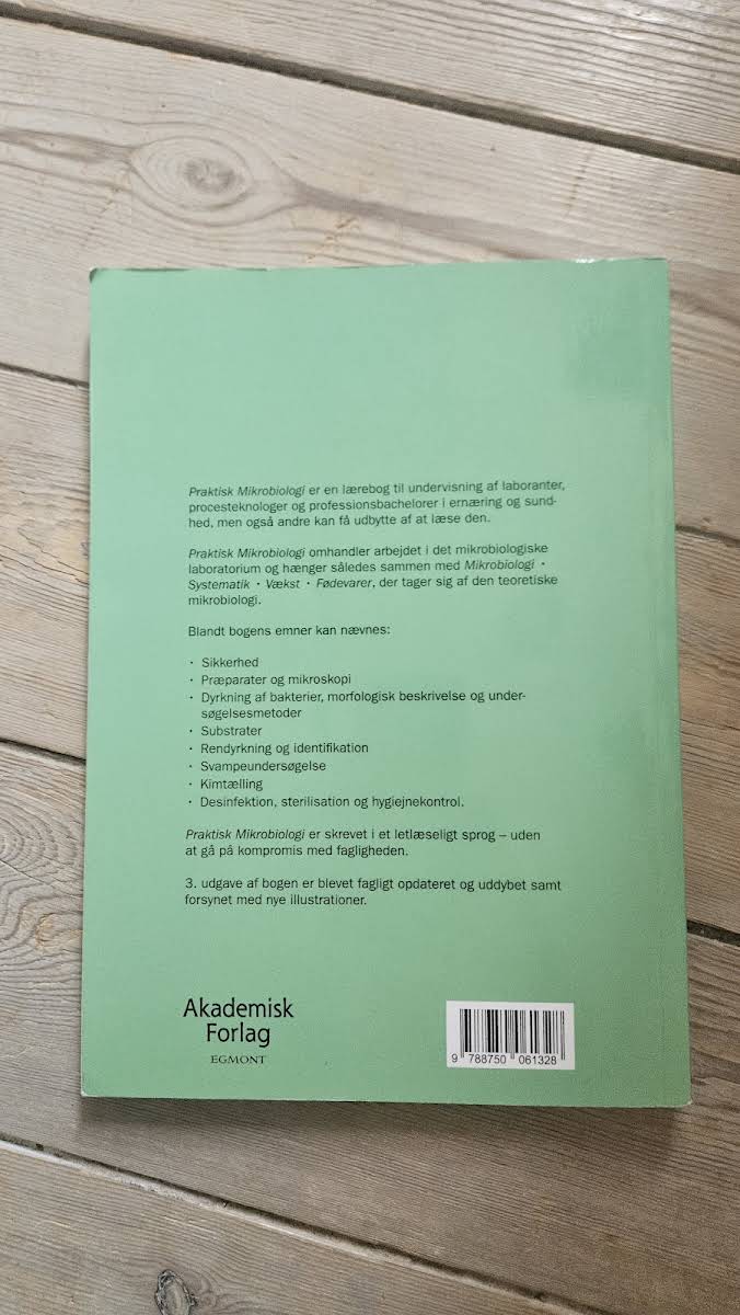 Praktisk Mikrobiologi er en grundlæggende lærebog, der henvender sig til laboranter, procesteknologer samt professionsbachelorer inden for ernæring og sundhed, men den vil også være til gavn for andre med interesse for mikrobiologi. Bogen dykker ned i det daglige arbejde i det mikrobiologiske laboratorium og fungerer som en naturlig forlængelse af den teoretiske mikrobiologi, herunder systematik, vækst og fødevaremikrobiologi. Blandt bogens emner findes: • Sikkerhed • Præparater og mikroskopi • Dyrkning af bakterier, morfologisk beskrivelse og undersøgelsesmetoder • Substrater • Rendyrkning og identifikation • Svampeundersøgelse • Desinfektion, sterilisation og hygiejnekontrol Denne 3. udgave, udgivet af Akademisk Forlag i 2022, er fagligt opdateret og uddybet, og den indeholder nye illustrationer, der gør stoffet let tilgængeligt uden at gå på kompromis med den faglige dybde.