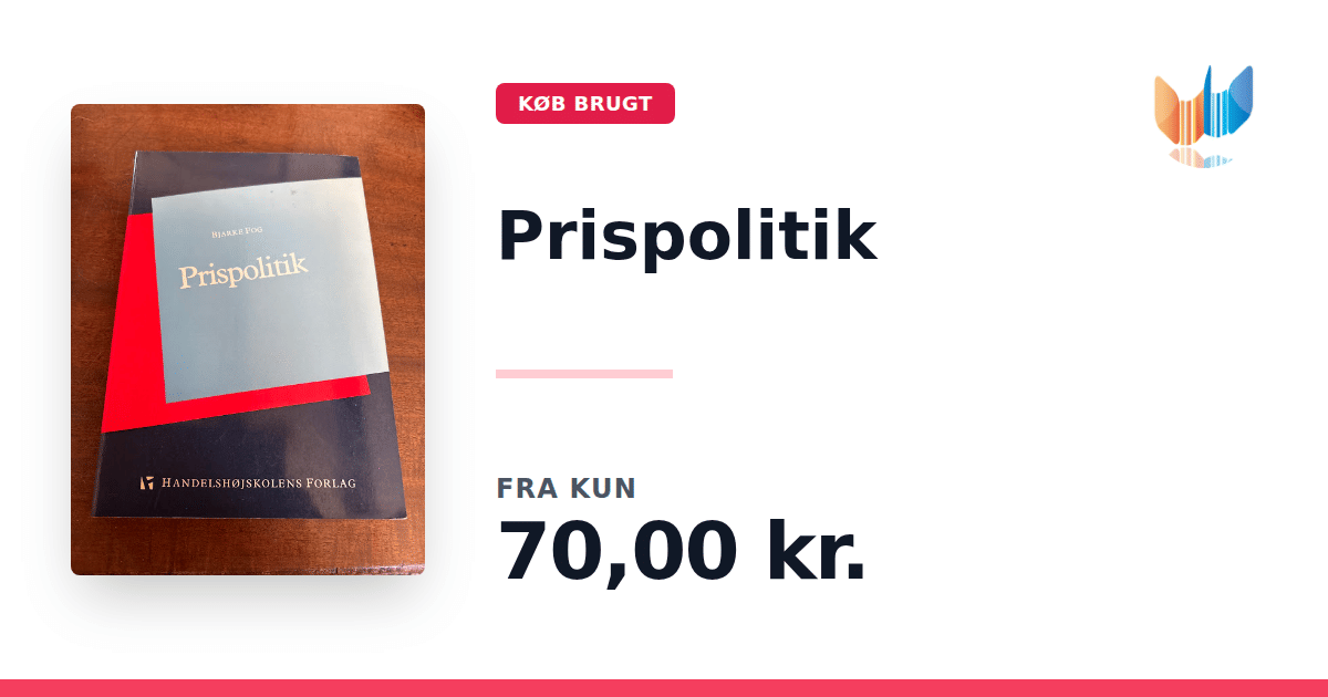 Sælger denne klassiske lærebog i prispolitik af Bjarke Fog (6. udgave). Bogen er helt central for forståelsen af, hvordan virksomheder fastsætter priser i praksis, og den kombinerer økonomisk teori med konkrete analyser af dansk industri. Anbefalet læsning på flere økonomiske uddannelser som HA, HD og Markedsføringsøkonom