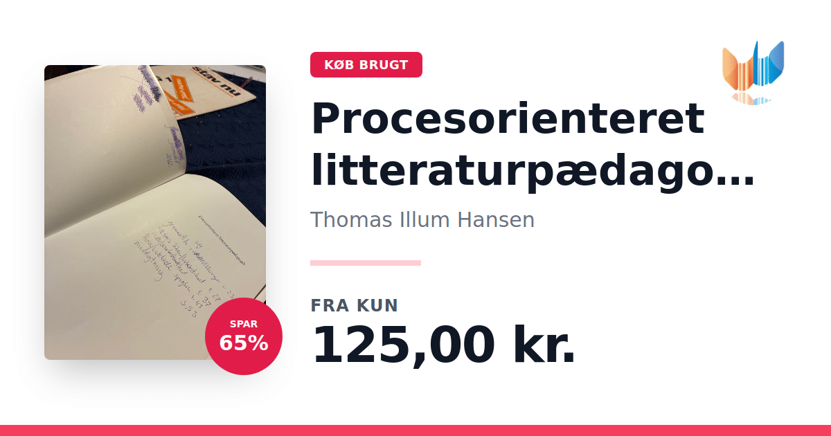 Lige nu kan du købe "Procesorienteret litteraturpædagogik" af Thomas Illum Hansen til kun 125,00 kr. Du sparer hele 65% af nyprisen! Bogen du ser her er brugt, og i god stand. Vi har i øjeblikket 3 eksemplarer til salg af "Procesorienteret litteraturpædagogik", så husk at se de forskellige udgaver.