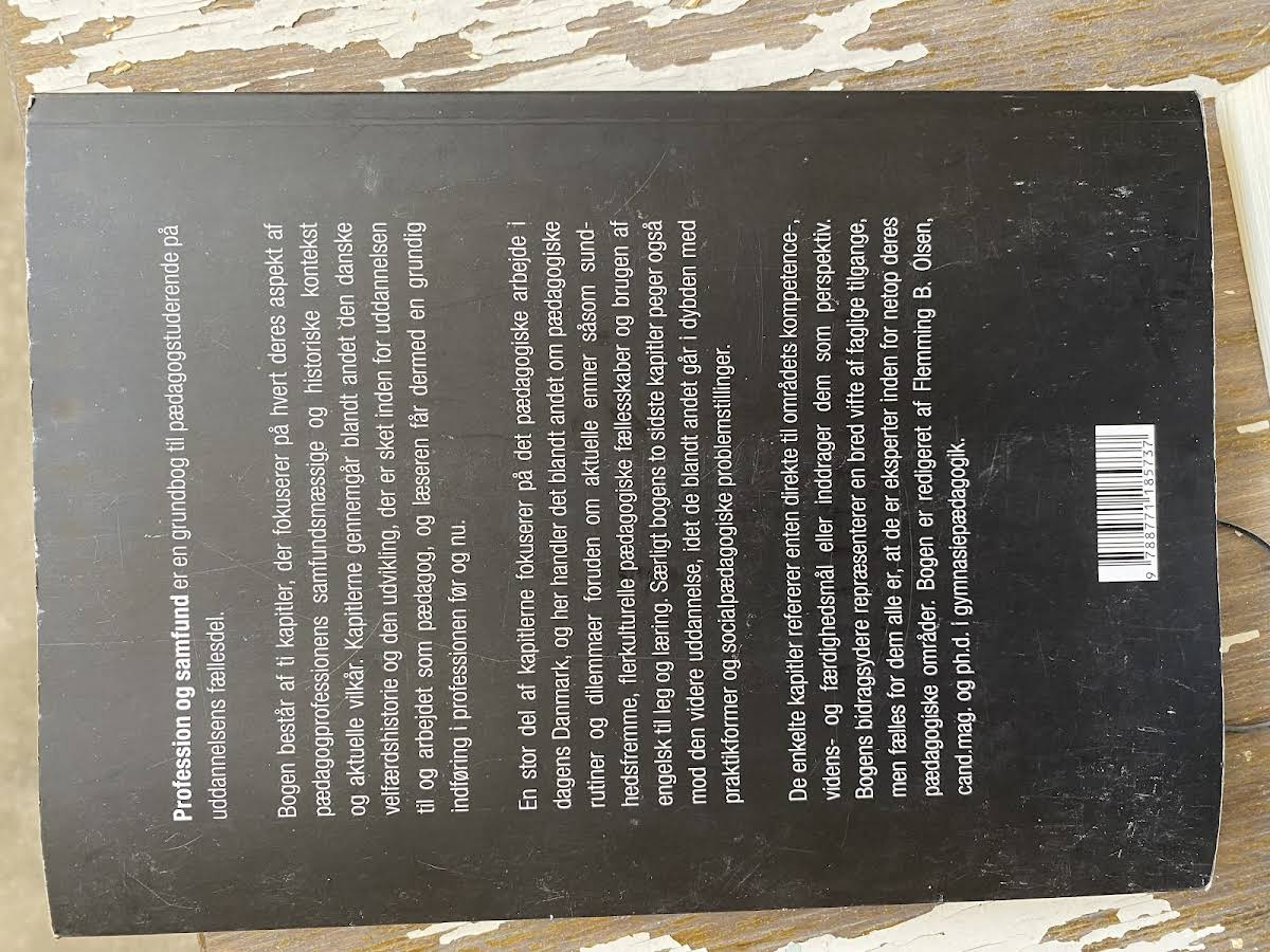 Profession og samfund - grundfaglighed på pædagoguddannelsen er en grundbog til pædagogstuderende på uddannelsens fællesdel, hvor pædagogprofessionens samfundsmæssige og historiske kontekst samt aktuelle vilkår står i centrum. Udgivet af Frydenlund i 2016, spænder bogen over 240 sider og ti kapitler, der tilsammen giver et grundigt indblik i professionens udvikling. De indledende kapitler skitserer den danske velfærdshistorie og beskriver, hvordan uddannelsen til og arbejdet som pædagog har forandret sig gennem tiden. Læseren får således et solidt overblik over pædagogprofessionens rødder, værdier og arbejdsfelt både før og nu. En stor del af bogen er dedikeret til det pædagogiske arbejde i nutidens Danmark med fokus på daglige rutiner, etiske dilemmaer og aktuelle emner som sundhedsfremme, flerkulturelle pædagogiske fællesskaber samt brugen af engelsk i leg og læring. De to sidste kapitler retter blikket mod den videre uddannelse med indsigt i forskellige praktikformer og socialpædagogiske problemstillinger. Hvert kapitel inddrager kompetence-, videns- og færdighedsmål, og forfatterne - Bent Greve, Karsten Tuft, Birgit Kirkebæk, Nils Falk Hansen, Kaj Storgaard Jensen, Anne Skov, Ditte Sørensen, Søren Smidt, Suzanne Krogh, Kirsten Kortbek, Mathilde Sederberg, Anne Bahrenscheer, Jill Mehlbye, Gert Bonde Nielsen, Gitte Lyng Rasmussen, Birgitte Højberg og Thomas Klostergaard Andersen - sikrer en bred og fagligt funderet tilgang.