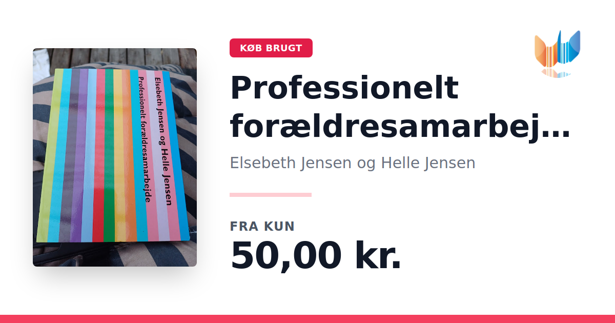 Lige nu kan du købe "Professionelt forældresamarbejde " af Elsebeth Jensen og Helle Jensen til kun 50,00 kr. Bogen du ser her er brugt, og i perfekt stand. Vi har i øjeblikket kun et enkelt eksemplar til salg af "Professionelt forældresamarbejde ", så slå til mens du kan!