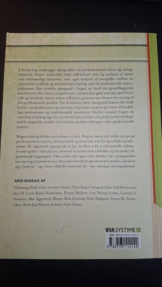 "Professioner under pres" tilbyder en nuanceret udforskning af, hvordan professionelle statuspositioner bliver formet og udfordret i lyset af øgede politiske og administrative styringsformer. Bogens centrale spørgsmål vedrører, hvad der fundamentalt konstituerer den status, en profession kan gøre krav på, samt hvordan denne status påvirkes af nye styringsparadigmer. Bogen indeholder en række bidrag, der spænder fra teoretiske perspektiver til dybdegående empiriske studier. I den første del belyses den overordnede status for professioner, både ud fra generelle principper og med fokus på specifikke faggrupper, hvor den professionelle videns betydning for identitetsdannelse understreges. I den anden del sættes der fokus på, hvordan den professionelle praksis forandres i takt med nye statslige styringsformer – nogle gange i direkte modsætning til den traditionelle professionelle autonomi. Sammen danner disse indsigter et alsidigt billede af de komplekse relationer mellem professionelle praksisser og omstændighederne, de opererer under.