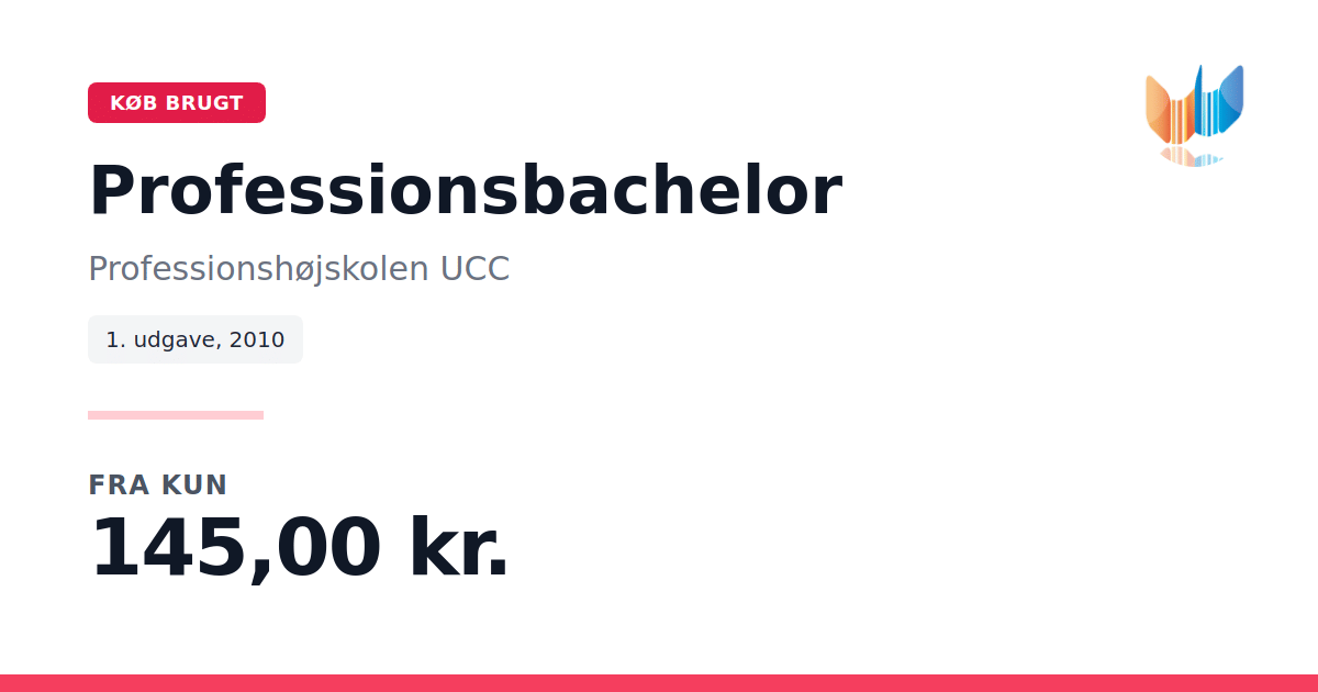 Lige nu kan du købe "Professionsbachelor" af Professionshøjskolen UCC til kun 145,00 kr. Du sparer hele 42% af nyprisen! Bogen du ser her er brugt, og i perfekt stand. Vi har i øjeblikket 5 eksemplarer til salg af "Professionsbachelor", så husk at se de forskellige udgaver.