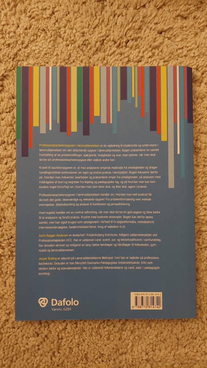 "Professionsbacheloropgaven i læreruddannelsen" er en praktisk guide, der støtter lærerstuderende i udarbejdelsen af deres afsluttende opgave. Bogen præsenterer centrale problemstillinger, spørgsmål og metodiske tilgange, der giver plads til både teoretisk fordybelse og empirisk undersøgelse. Med et klart fokus på at forene teori og praksis, inviterer værket til en vedvarende refleksion over egen og andres pædagogiske metoder. Den guider den studerende igennem de indledende overvejelser, opgavens struktur og de formelle krav, som en professionsbacheloropgave stiller.