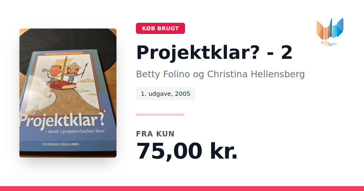 Lige nu kan du købe "Projektklar? - 2" af Betty Folino og Christina Hellensberg til kun 75,00 kr. Bogen du ser her er brugt, og i god stand. Vi har i øjeblikket kun et enkelt eksemplar til salg af "Projektklar? - 2", så slå til mens du kan!