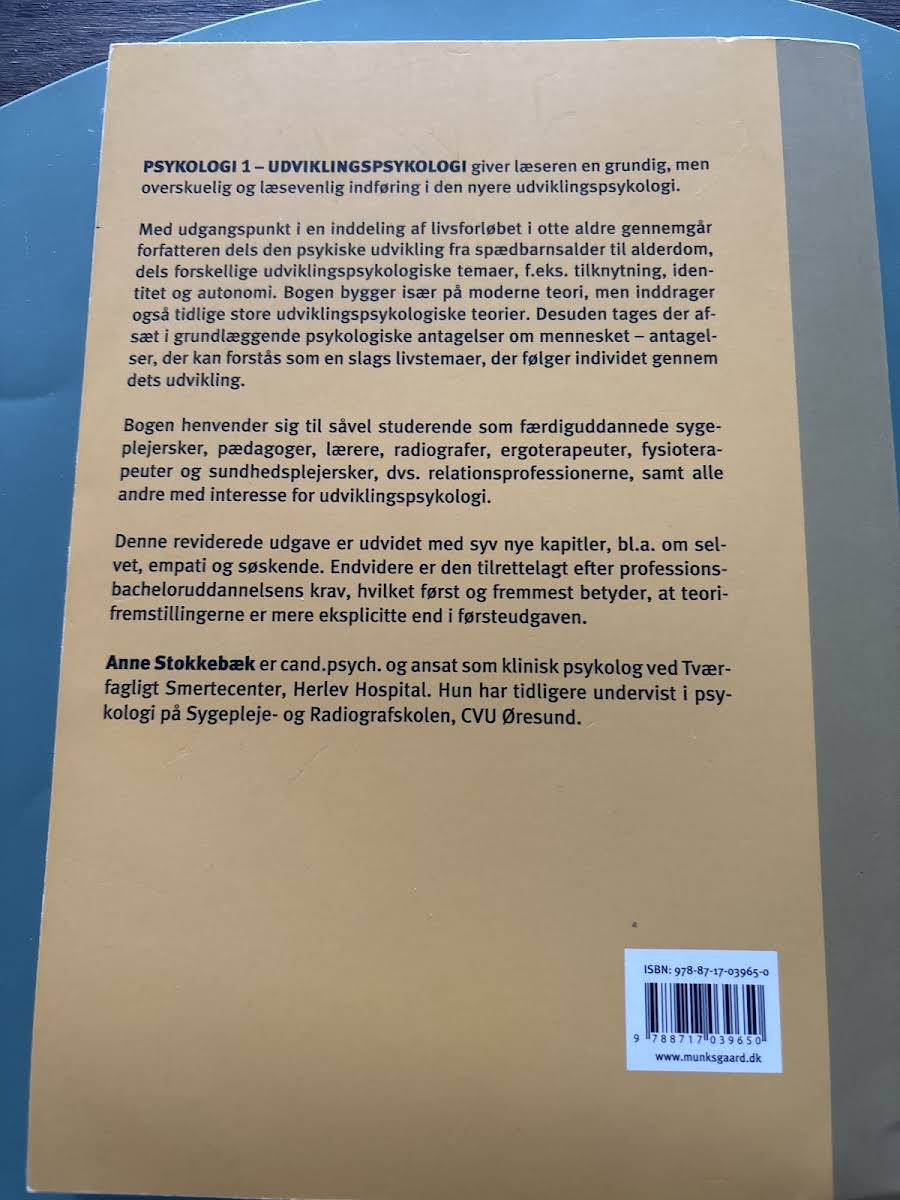 Anne Stokkebæk præsenterer med "Psykologi 1" en let tilgængelig og grundig introduktion til den nyere udviklingspsykologi. Bogen henvender sig til både studerende og fagpersoner inden for de relationsorienterede professioner, herunder sygeplejersker, pædagoger, lærere, radiografer, ergoterapeuter, fysioterapeuter og sundhedsplejersker, og giver læseren et solidt fundament i emnet. Med udgangspunkt i en opdeling af livsforløbet i otte aldre undersøges den psykiske udvikling fra spædbarn til alderdom. Temaer som tilknytning, identitet og autonomi behandles ud fra et moderne teoretisk perspektiv, og bogen er desuden udvidet med syv nye kapitler, som giver yderligere dybde og aktualitet til stoffet. "Psykologi 1" udgivet af Munksgaard i 2007, tilbyder en levende og indsigtfuld tilgang til udviklingspsykologien, der både er fagligt funderet og letforståelig.
