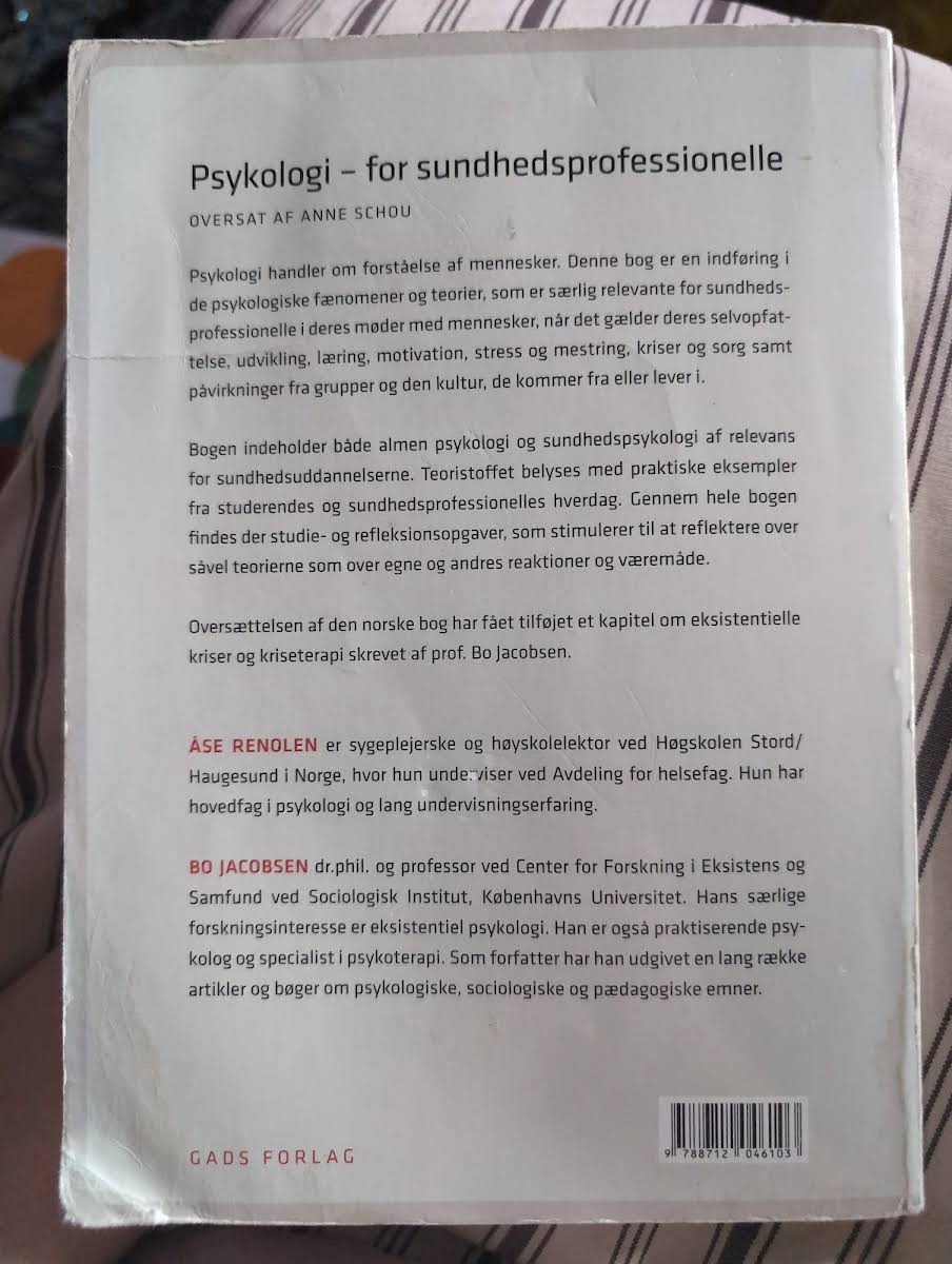 Psykologi – for sundhedsprofessionelle er en grundlæggende indføring i de psykologiske teorier og fænomener, der er centrale for arbejdet inden for sundhedssektoren. Bogen, skrevet af Åse Renolen og udgivet af Gad i 2011, behandler emner som selvopfattelse, motivation, stress, krisesituationer og sorg. Derudover lægges der vægt på de kulturelle faktorer og gruppedynamikker, der påvirker både patienters og sundhedsprofessionelles hverdag. Med en kombination af teoretisk stof og praktiske eksempler, tilbyder bogen et nyttigt perspektiv for både studerende og erfarne sundhedsprofessionelle. Den inspirerer til refleksion over, hvordan psykologiske processer former menneskers reaktioner og interaktioner, og giver dermed en dybere forståelse for de udfordringer, man møder i dagligdagen.