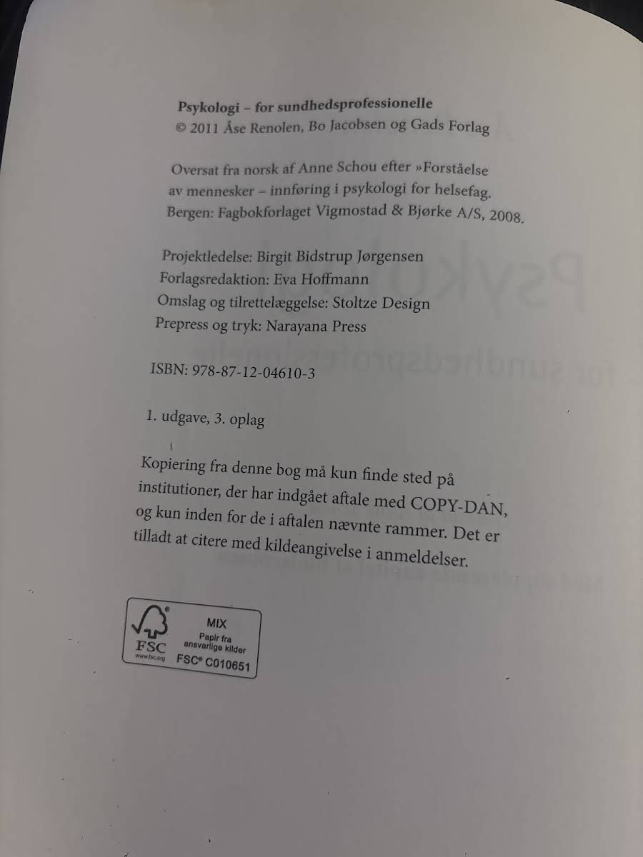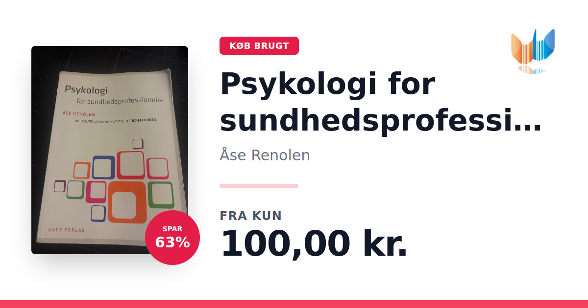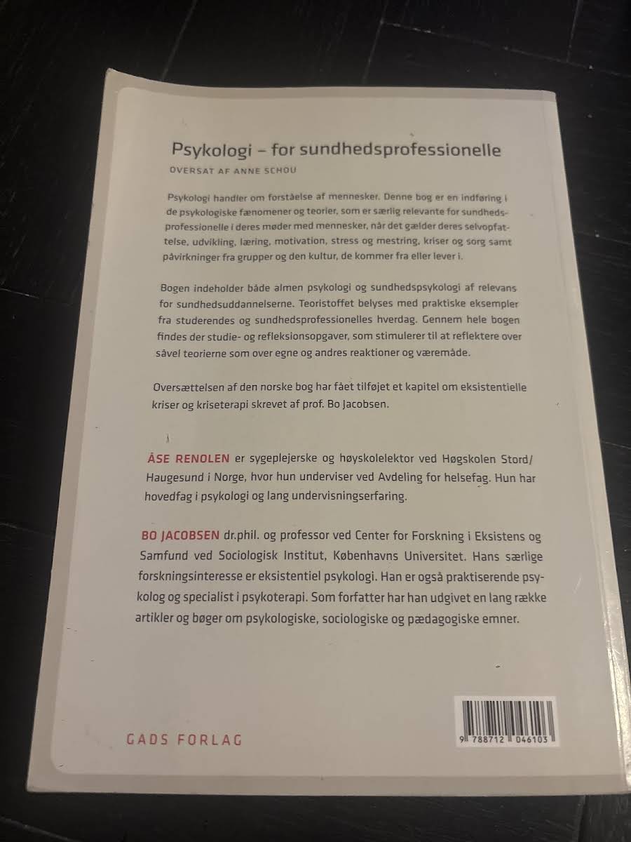 Psykologi – for sundhedsprofessionelle er en grundlæggende indføring i de psykologiske teorier og fænomener, der er centrale for arbejdet inden for sundhedssektoren. Bogen, skrevet af Åse Renolen og udgivet af Gad i 2011, behandler emner som selvopfattelse, motivation, stress, krisesituationer og sorg. Derudover lægges der vægt på de kulturelle faktorer og gruppedynamikker, der påvirker både patienters og sundhedsprofessionelles hverdag. Med en kombination af teoretisk stof og praktiske eksempler, tilbyder bogen et nyttigt perspektiv for både studerende og erfarne sundhedsprofessionelle. Den inspirerer til refleksion over, hvordan psykologiske processer former menneskers reaktioner og interaktioner, og giver dermed en dybere forståelse for de udfordringer, man møder i dagligdagen.