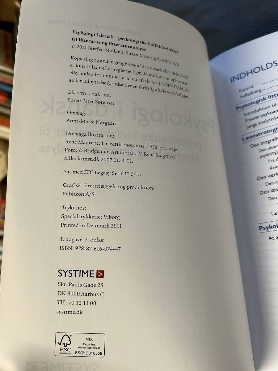 • Psykologi i dansk - Psykologiske indfaldsvinkler til litteratur og litteraturanalyser, Steffen Mailand, Susan Mose, 9788761607447