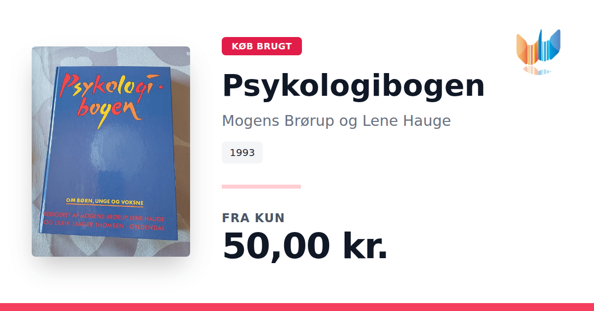 Lige nu kan du købe "Psykologibogen" af Mogens Brørup og Lene Hauge til kun 50,00 kr. Bogen du ser her er brugt, og i perfekt stand. Vi har i øjeblikket 3 eksemplarer til salg af "Psykologibogen", så husk at se de forskellige udgaver.