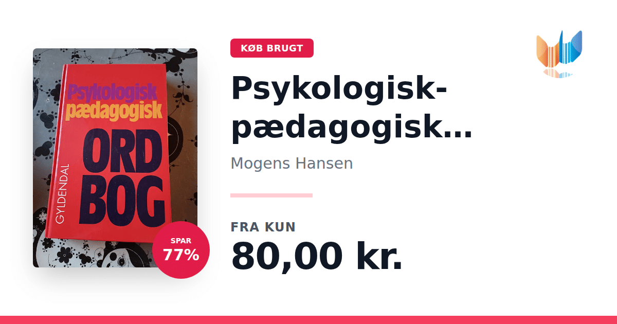 Lige nu kan du købe "Psykologisk-pædagogisk ordbog" af Mogens Hansen til kun 80,00 kr. Du sparer hele 77% af nyprisen! Bogen du ser her er brugt, og i perfekt stand. Vi har i øjeblikket 8 eksemplarer til salg af "Psykologisk-pædagogisk ordbog", så husk at se de forskellige udgaver.