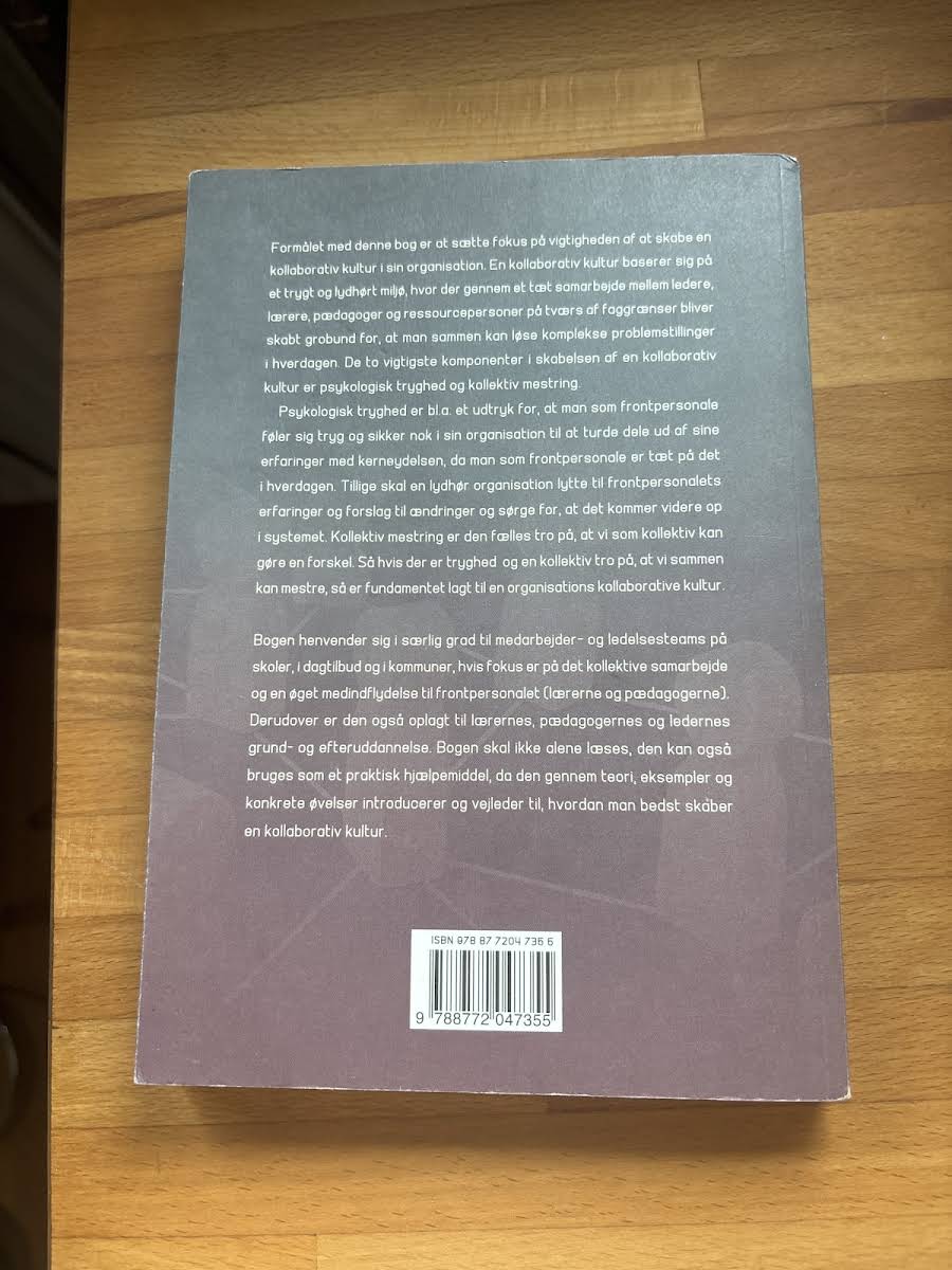 Psykologisk tryghed og kollektiv mestring - Vejen til en kollaborativ kultur er skrevet, fordi vi i uddannelsessystemet og på skole- og dagtilbudsområdet står over for stadigt mere komplekse udfordringer: inklusion, frafald, differentiering og fravær. For at løse disse opgaver kræves et samarbejde, der rækker ud over faggrænser og sætter fælles mål over siloer. Samarbejdet vil fremover ofte tage form af ad-hoc teaming, men må udvikle sig til en modningsproces, hvor teams omdannes til en reel kollaborativ kultur. Det handler ikke blot om strukturer og tekniske løsninger, men om et miljø, hvor dialog og nysgerrighed er afgørende drivkræfter. Gennem teori, praksiseksempler og en række konkrete øvelser viser Peter Andersen, hvordan man skaber en organisation, der både er tryg og lydhør. Med frontpersonalets oplevelser af kerneydelsen som omdrejningspunkt får læseren redskaber til at bygge bro mellem dagligdagens handlinger og overordnede mål. Frontpersonalet - lærere, pædagoger, medhjælpere og ledere - er hverdagens helte. De er de første til at mærke effekten af nye tiltag, og det er afgørende, at deres stemmer bliver hørt og respekteret. Uden psykologisk tryghed tøver de med at give kritik og dele erfaringer, hvilket kan spænde ben for beslutningsprocesser højere oppe i hierarkiet. Kollektiv mestring opstår, når medarbejderne får tillid til, at de sammen kan løse komplekse opgaver - uanset elevernes forudsætninger. Denne fælles tro på egne evner er vigtigere end den enkeltes faglige kunnen og udgør fundamentet for at navigere i forandringer. Psykologisk tryghed handler om at overkomme det naturlige selvbeskyttelsesinstinkt og skabe et miljø, hvor man tør løbe personlige risici til fordel for organisationens udvikling. Sådan en kultur kræver også en lydhør ledelse, som proaktivt lytter til og anvender medarbejdernes input til at styrke kerneopgaven. Bogen henvender sig til medarbejder- og ledelsesteams på skoler, i dagtilbud og i kommuner, der arbejder med professionel kapital, co-teaching eller lærende fællesskaber og ønsker øget medindflydelse til frontpersonalet. Den kan både læses alene og bruges direkte som et praktisk værktøj i teamets udviklingsarbejde, ligesom den er oplagt i grund- og efteruddannelse.