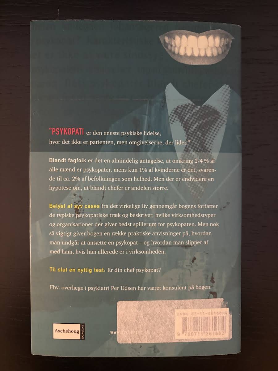 Sanne Udsen Psykopater i Jakkesæt bog. Bogen omhandler psykopater i ledelsespositioner og deres adfærd. Den indeholder analyser og beskrivelser af psykopaters karaktertræk og deres påvirkning i arbejdsmiljøer.
