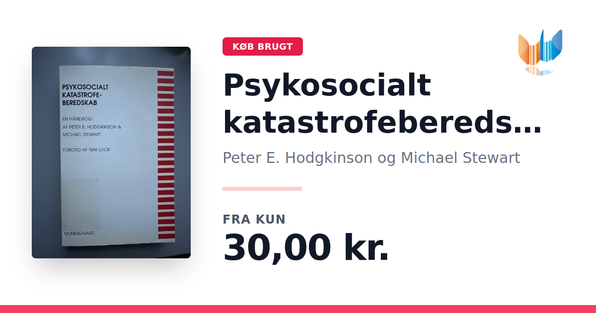 Lige nu kan du købe "Psykosocialt katastrofeberedskab" af Peter E. Hodgkinson og Michael Stewart til kun 30,00 kr. Bogen du ser her er brugt, og i god stand. Vi har i øjeblikket kun et enkelt eksemplar til salg af "Psykosocialt katastrofeberedskab", så slå til mens du kan!