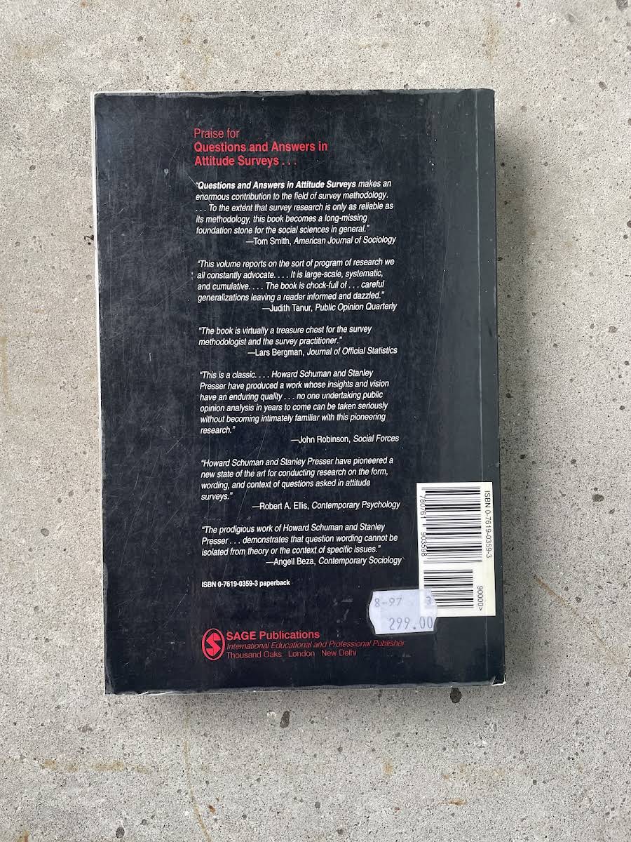• Questions and Answers in Attitude Surveys, Howard Schuman, Stanley Presser, 9780761903598