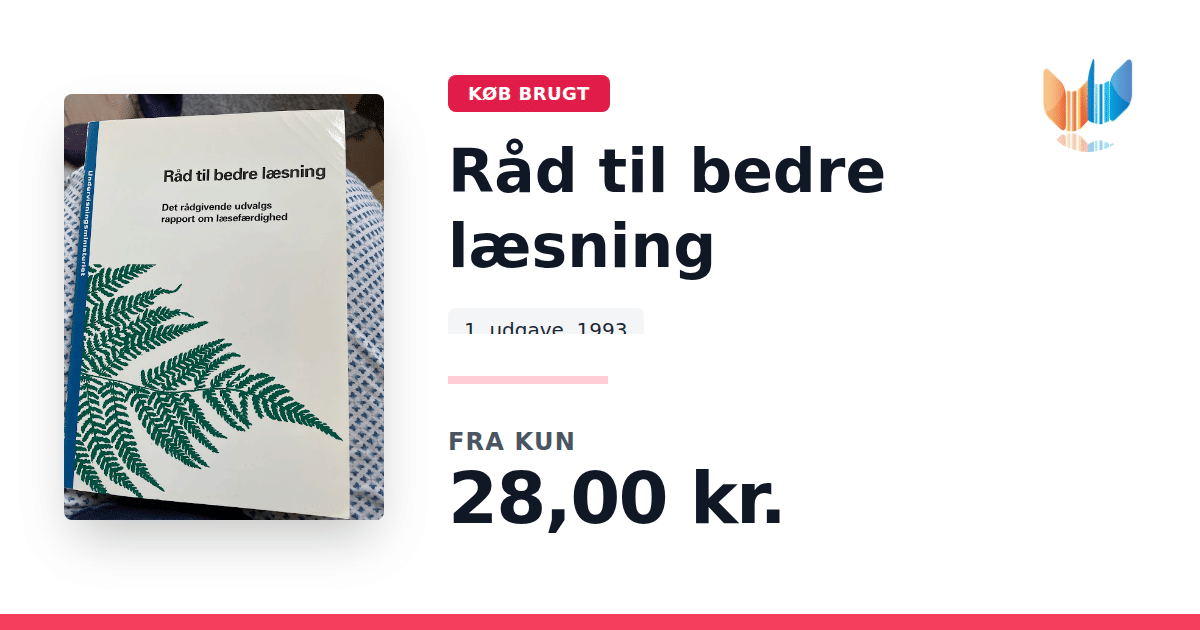 Lige nu kan du købe "Råd til bedre læsning" til kun 28,00 kr. Bogen du ser her er brugt, og i god stand. Vi har i øjeblikket kun et enkelt eksemplar til salg af "Råd til bedre læsning", så slå til mens du kan!